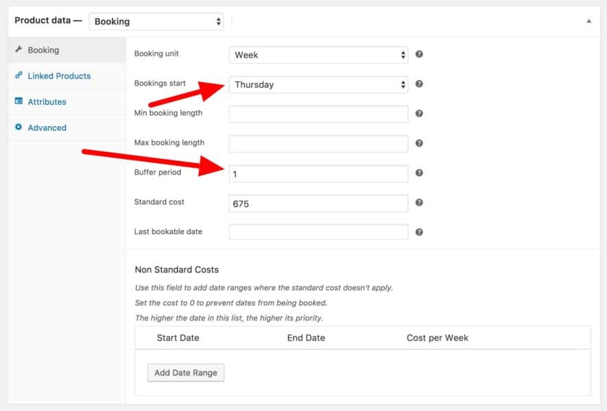 You can set a date here as the last date that you are taking bookings. If you only want to take bookings up to the end of the year, use the calendar in this field to select the date. You can change it at a future date if you’re ready to take bookings beyond this date. - Non Standard Costs